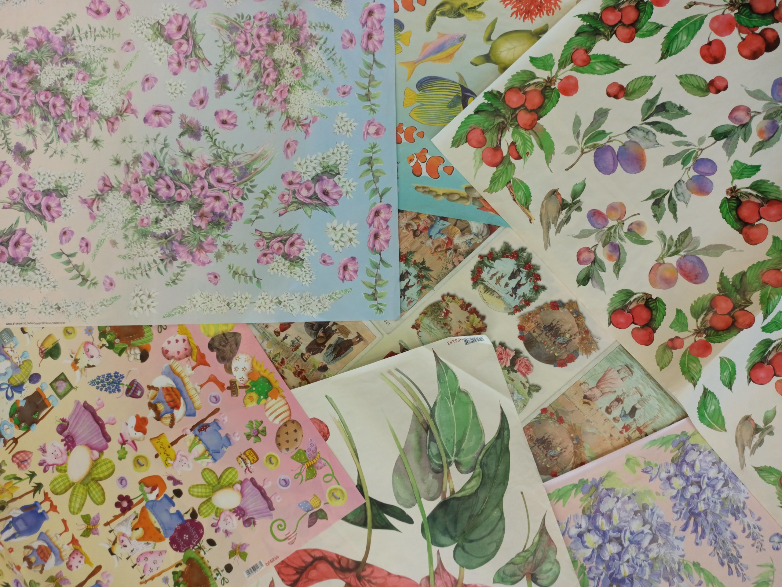 Carte per decoupage assortimento 10 fogli varia tipologia e soggetti